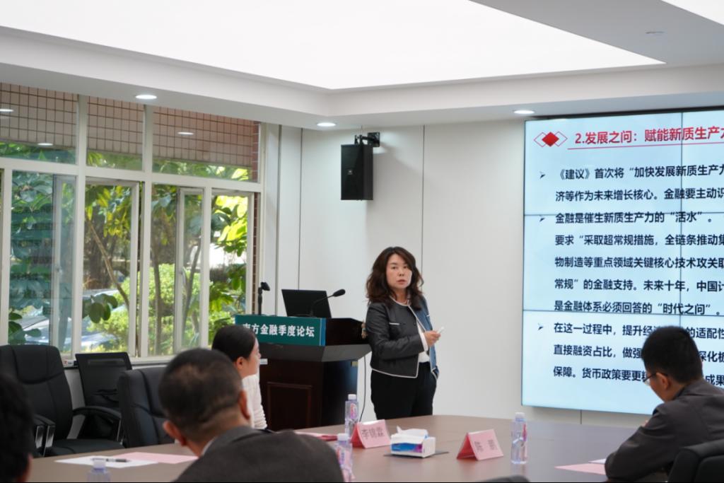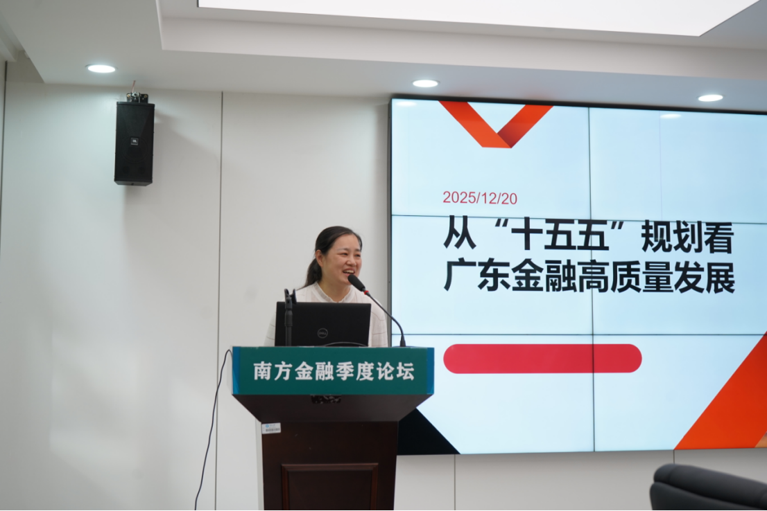 李锦霖分享了“从十五五规划看广东金融高质量发展”的演讲,她认为,广东金融要在中国特色经济学范式下谋划新篇。面向“十五五”,广东金融的首要任务是“保基数、争增量”:一方面锁定存量风险底数,用政策性工具、产业基金和资本市场投融资协同为实体经济托底;另一方面在科技金融、绿色金融、普惠金融、养老金融、数字金融“五篇大文章”上争夺增量空间,把合理区间的弹性转化为高质量发展的韧性。同时她呼吁学界与业界各司其职、各尽其能,尽快把“合理区间”从政策口号转化为可量化、可预警、可修正的操作框架,为广东建设金融强国“省域样板”提供理论支撑与制度方案。